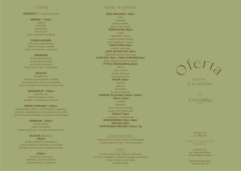Jednak dopiero mieszkając we Włoszech i podziwiając niesamowite słodkości w domowym stylu zrodził się pomysł na Cremino. Dbam o indywidualność każdego wypieku, smak dostosowany do gustu klienta