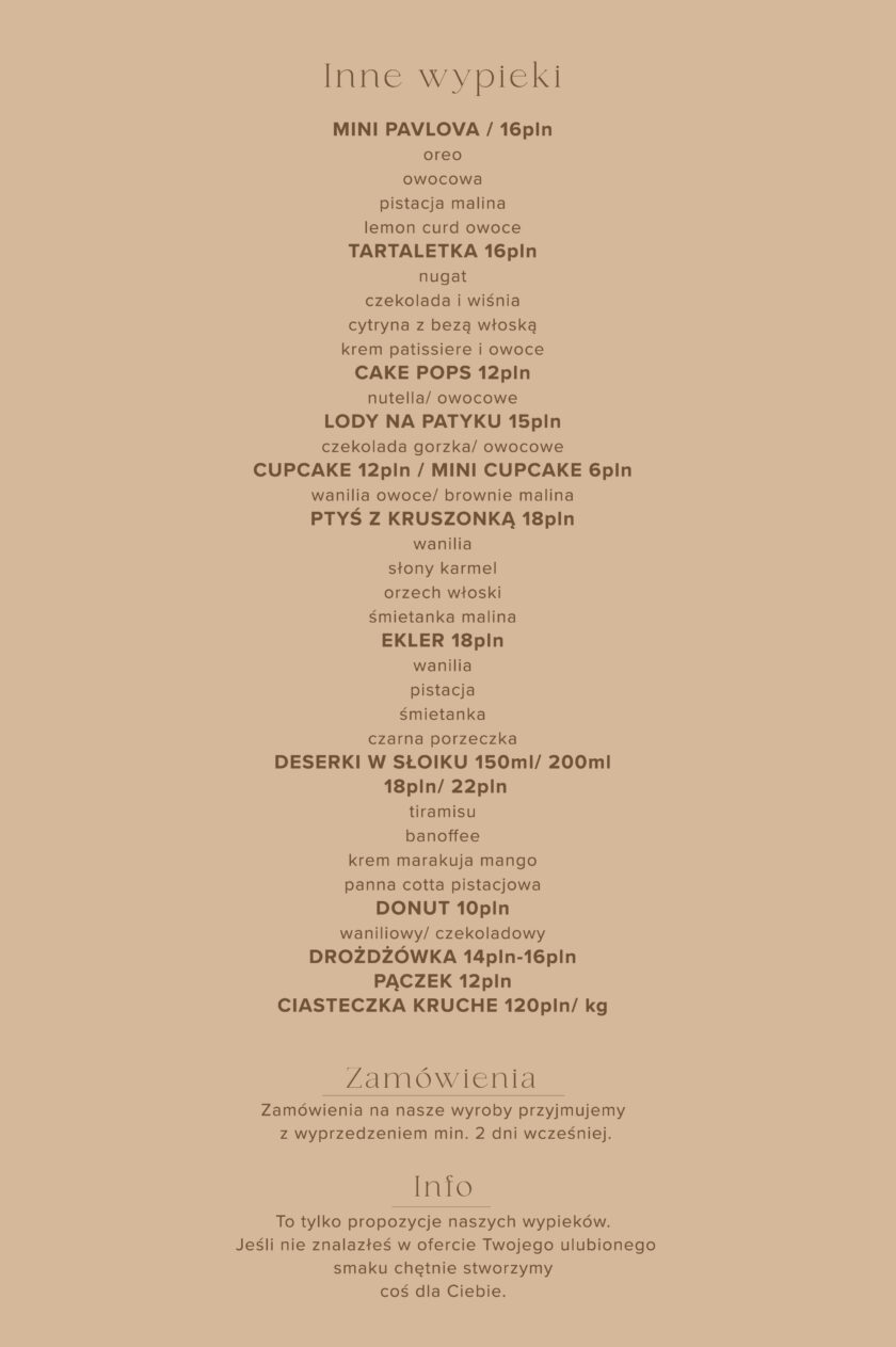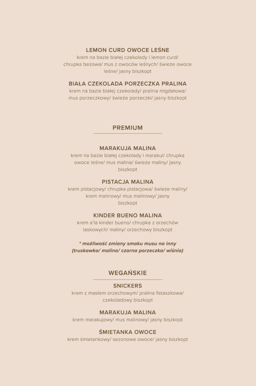 domowych przepisów. Dostosowane do indywidualnych potrzeb klienta, z uwagą na alergię czy ulubione smaki.